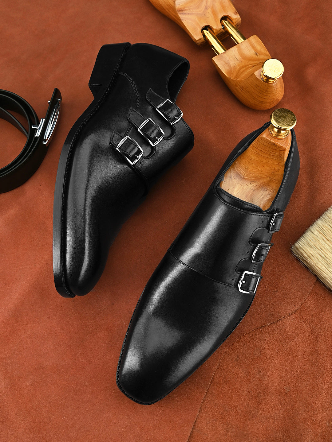 Polished Black Goodyear-Welted Monk Strap Shoes