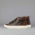 Alligator Leather High Top Lace Up Sneakers With White Sole - Sneaker Shoes