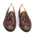 Brown Hand Woven Braided Leather Acton Tassel Loafers